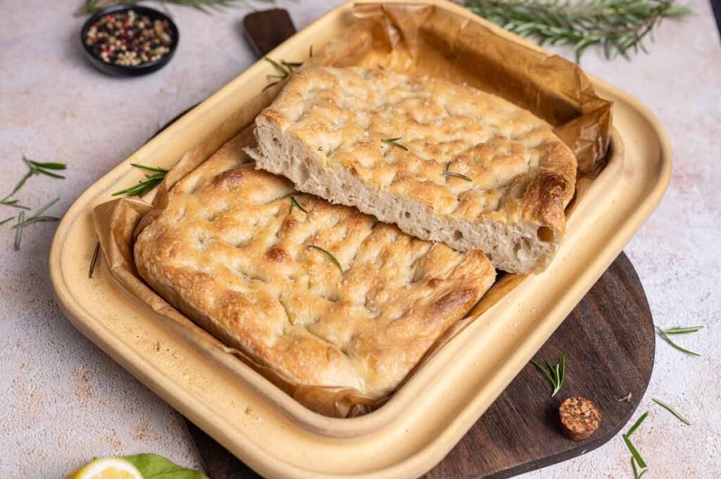 Wenn der Duft von goldener Focaccia mit Olivenöl und Rosmarin aus dem Ofen zieht, fühlt…
